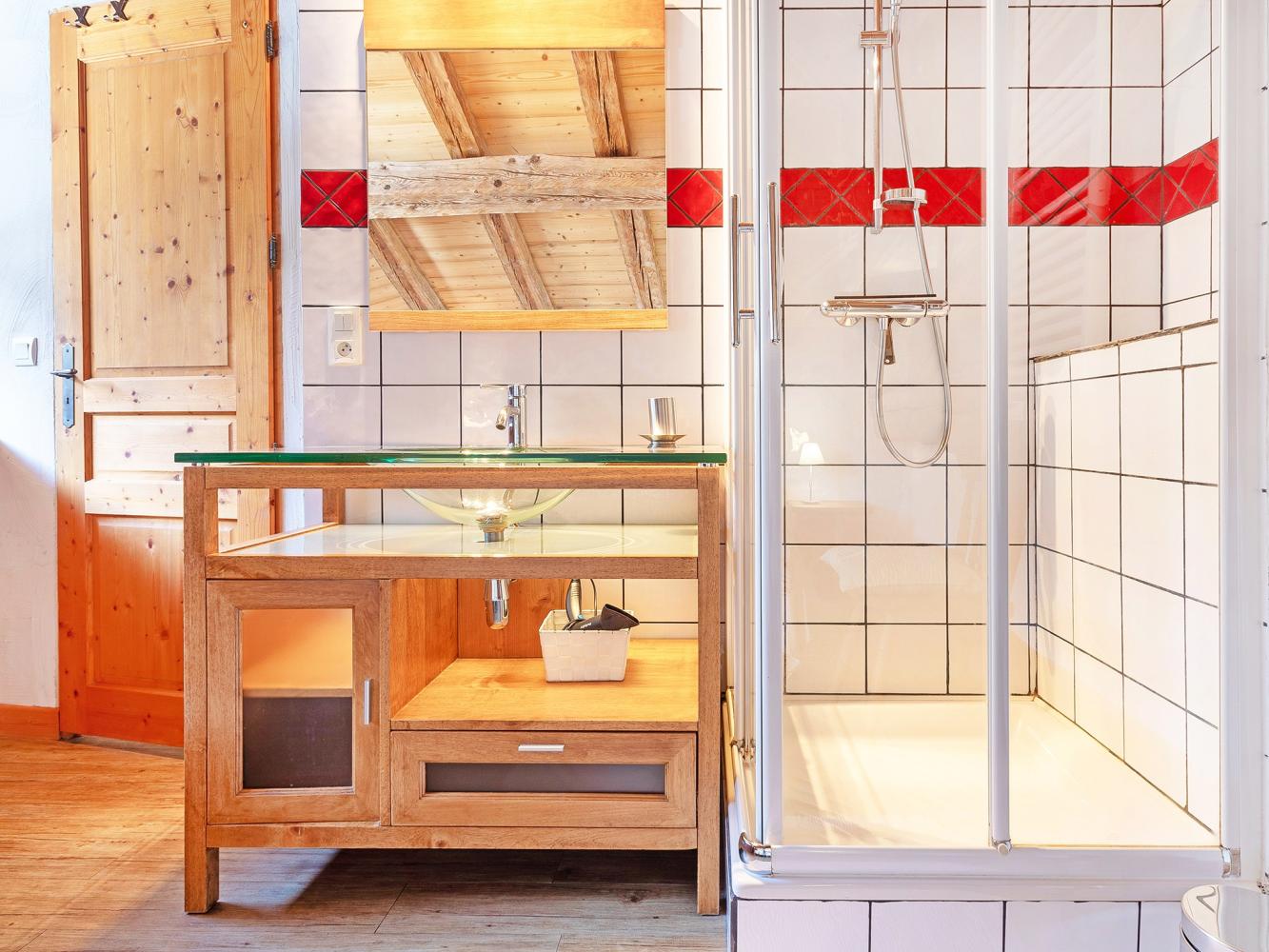Entfernung zum Skigebiet Paradiski ~450 m. Luxus-Chalet, sehr großzügig ausgelegt mit Kamin, Sauna und Gratis-WLAN. Hier verbindet sich der Flair eines altes Chalets und der Komfort eines modern ausgebauten Feriendomizils. Vom Eingangsbereich gelangt man in die moderne Küche sowie das sehr helle und große Esszimmer. Daran anschließend die einladende Sitzecke mit Sat-TV und die gemütliche Kaminecke. Auf dieser Etage befindet sich auch ein Doppelzimmer und ein Dreibett-Zimmer. Im Obergeschoss sind die anderen 5 Schlafzimmer sowie die Sauna. Alle Schlafzimmer verfügen "en suite" über ein eigenes Bad. Abgeschl. Bereich im unteren Teil des Chalets steht nicht zur Verfügung.