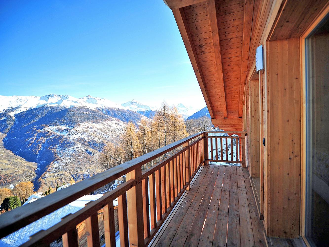 Das Chalet vermittelt höchsten Wohnkomfort, es befindet sich in sonniger Lage mit atemberaubender Aussicht auf das Rhônetal, die Berner Alpen sowie das Matterhorn. Das stilsicher und modern ausgestattete Chalet verfügt über fünf Schlafzimmer, alle mit eigenem Bad. Neben dem großzügigen Wohnbereich gibt es auf der Galerie noch einen privaten TV-/Arbeitsbereich.