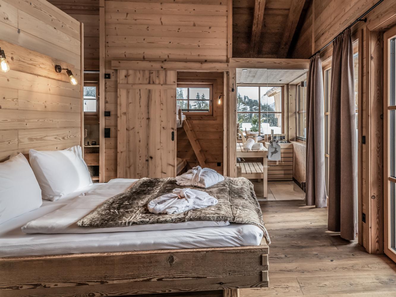 Außen-Hot Pot. Dieser befüllt sich auf Knopfdruck mit warmen Bergquellwasser. Bademäntel und Handtücher werden kostenfrei zur Verfügung gestellt. Im Chalet gibt es zudem ein MOVEit Bluetooth Soundsystem, ein Suitepad mit aktuellen Zeitungen und Spielen sowie eine Spielesammlung mit Gesellschaftsspielen. Genießen Sie die Natur auf der großzügigen