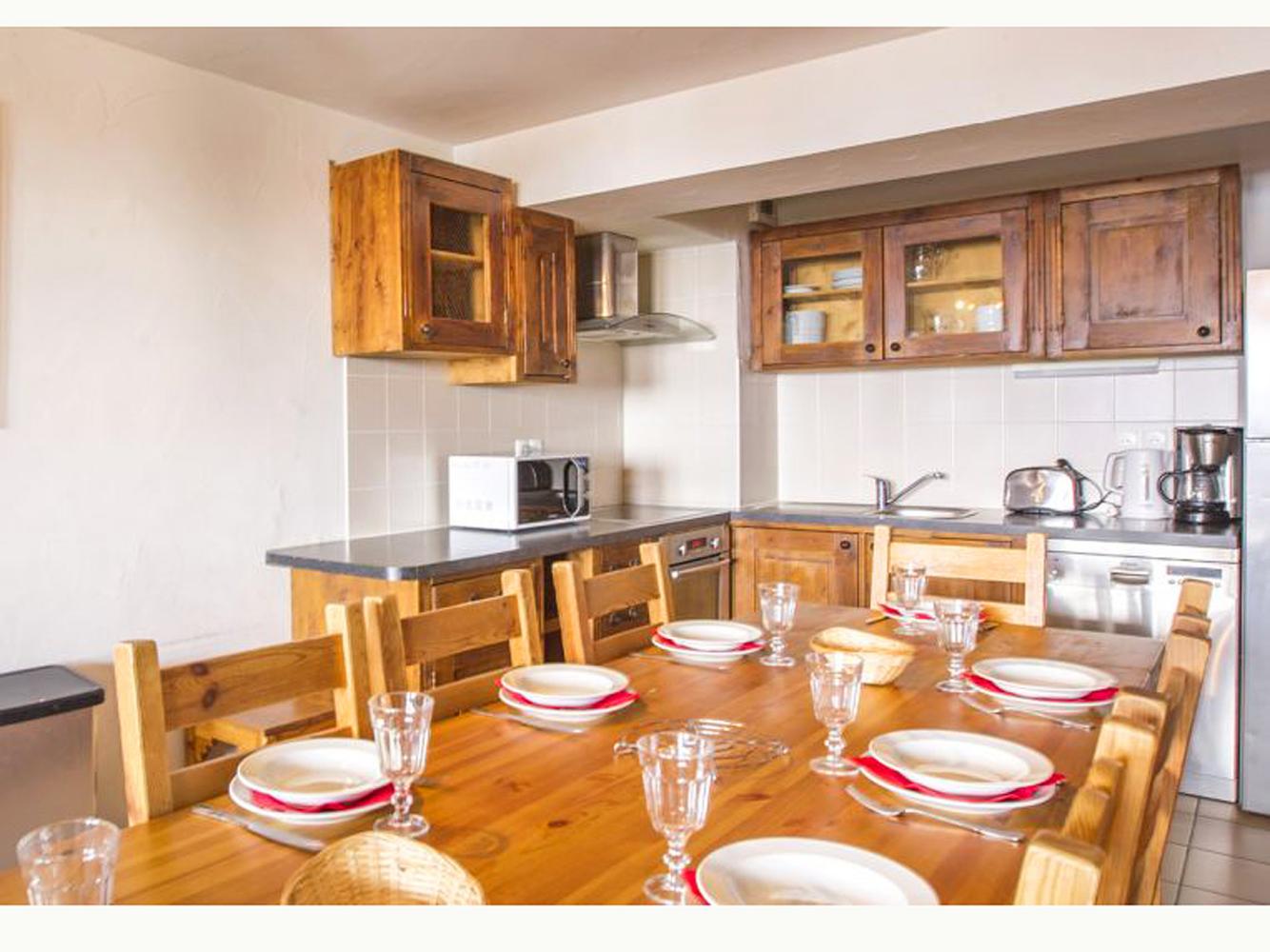 Küchenzeile (Spülmaschine + Kühlschrank mit Gefrierfach + Vier-Platten-Herd mit Cerankochfeld + Backofen + Mikrowelle + Kaffeemaschine + Toaster + Wasserkocher); Kaminofen; Sat-TV (Flachbildschirm); Gratis-WLAN; 2-3 Balkone; Skischrank; Skischuhtrockner