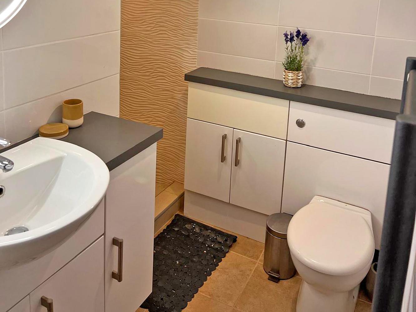 Level 2: hier befindet ein Schlafzimmer mit Doppelbett und eines mit 2 Einzelbetten. Badezimmer mit Dusche und WC.