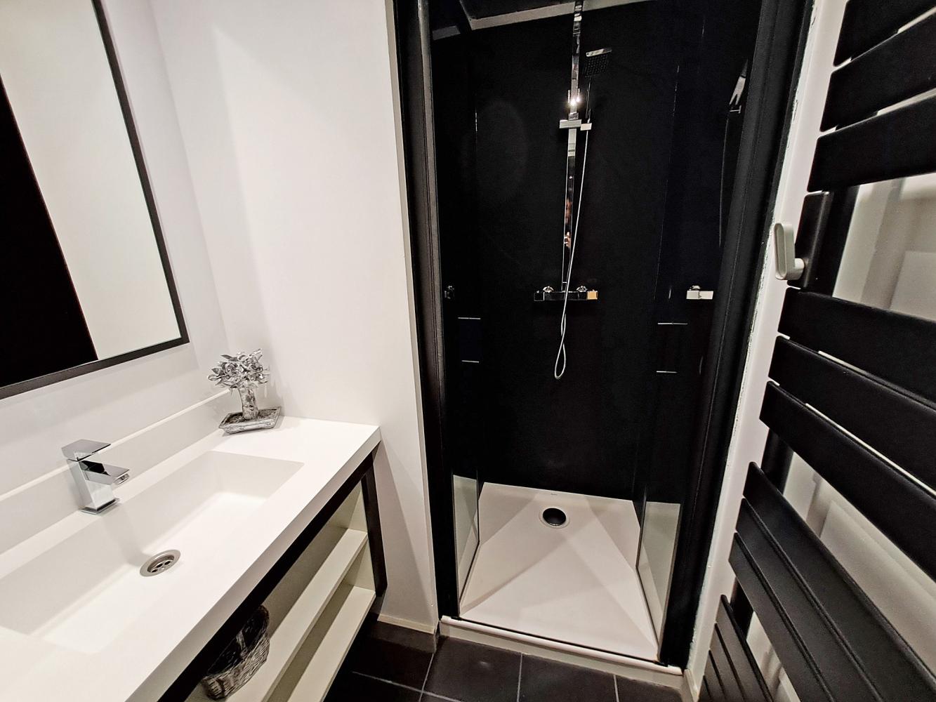 Basisgeschoss: Auf dieser Etage befindet sich der Haupteingang des Chalets. Hier befindet sich ein Schlafzimmer, das mit 2 Einzelbetten (90 x 200 cm), einem Hochbett (90 x 200 cm) und einem Badezimmer en-suite ausgestattet ist. Der Wellnessbereich mit Whirlpool und Sauna befindet sich ebenfalls hier.