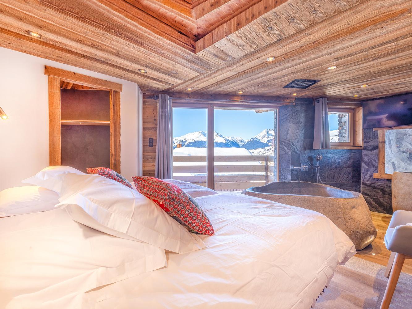 Entfernung zum Skigebiet La Plagne - Paradiski ~50 m. Exklusives, neu erbautes Luxus-Chalet in Ski in - Ski out Lage, mit offenem Kamin, Home Cinema für 8 Personen und Gratis-WLAN. Wellnessbereich mit Sauna, Dampfbad sowie Kältebecken. Außen-Whirlpool auf der Terrasse, mit Mont Blanc-Blick. Fitnessraum mit Geräten. Das Chalet liegt im Top-Skigebiet von La Plagne - Paradiski, an der Skipiste (ca. 50 m). Ca. 100 m sind es zum Express-6er Sessellift Plan Bois. Der Standort in Les Coches, dem höher gelegenen Ortsteil von Montchavin, eignet sich aufgrund seiner Lage im Herzen des Gebiets ideal zur Erkundung des gesamten Skiareals.