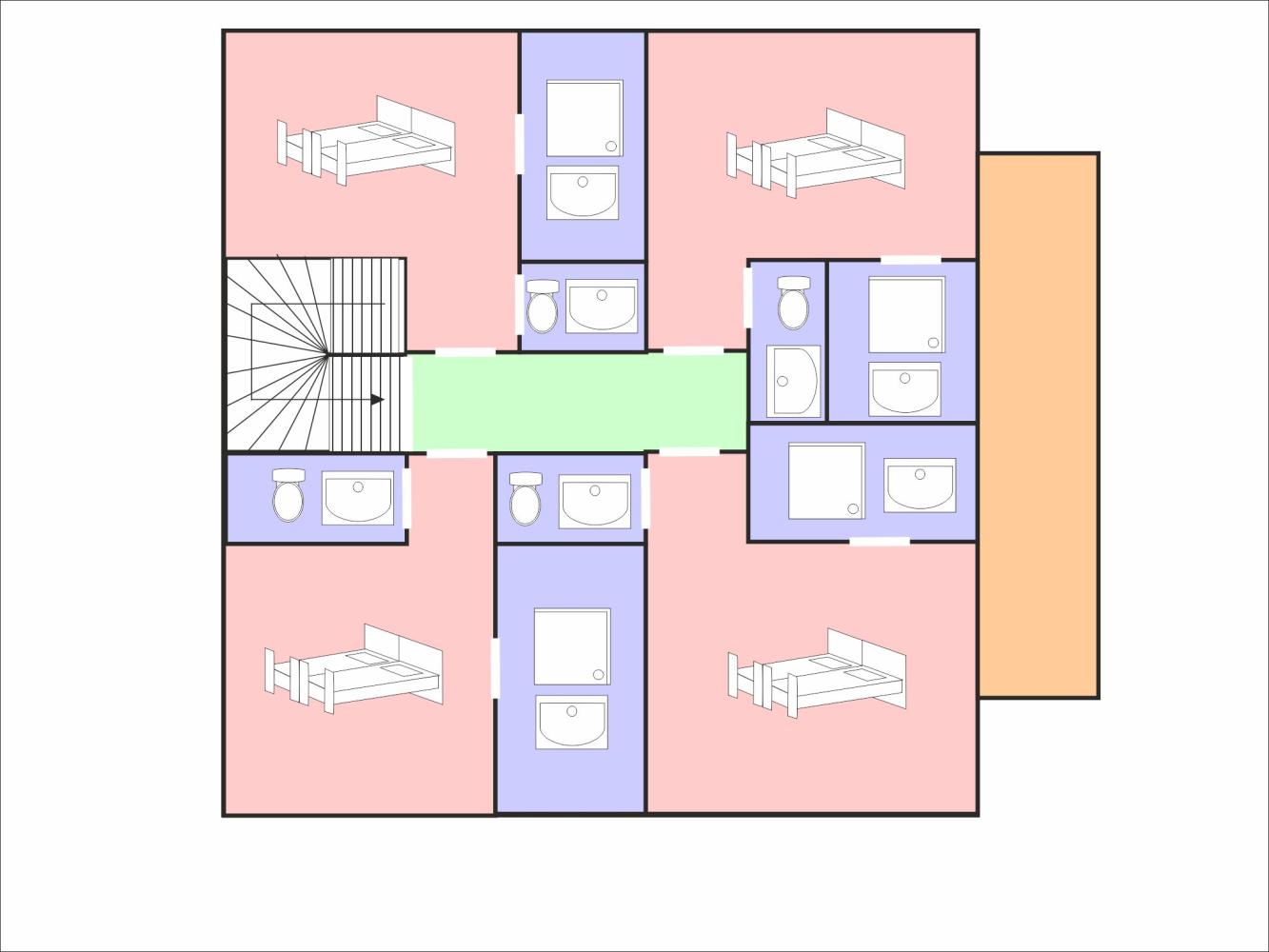 Auf der ersten Etage befinden sich 4 Schlafzimmer mit Doppelbett (180 cm x 200 cm). Alle Doppelzimmer verfügen "en-suite“ über ein eigenes Badezimmer mit Regendusche und Waschbecken sowie über ein separates WC. Darüber hinaus gibt es in jedem Schlafzimmer einen Fernseher (Smart-TV mit Astra- & Hotbird Sat). Zur weiteren Unterhaltung trägt ein 60" Smart-TV inkl. Dolby Surround Heimkino im Wohnbereich bei. Ein Blu-Ray-Player (auch DVDs / CDs abspielbar) und eine iPhone-Dockingstation ist vorhanden.
