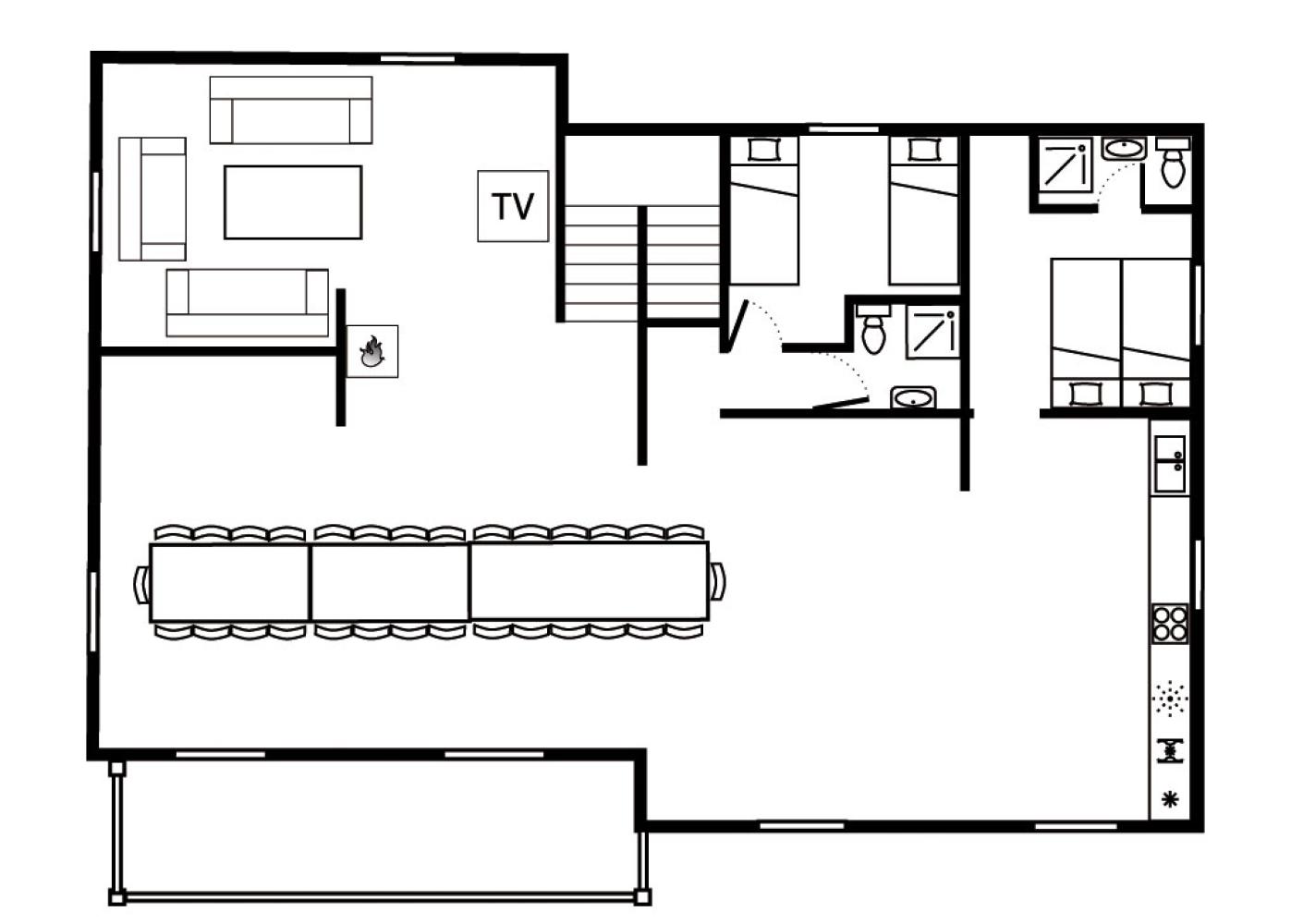 kitchen open to the living room (2 dishwashers + 2 refrigerators + freezer + cooker with 6 ceramic hobs + 2 ovens + 2 microwaves + 2 coffee machines + 2 electric kettles); fireplace; satellite TV; DVD player; free WiFi; towel dryer; terrace; balcony; ski room; ski boot dryer