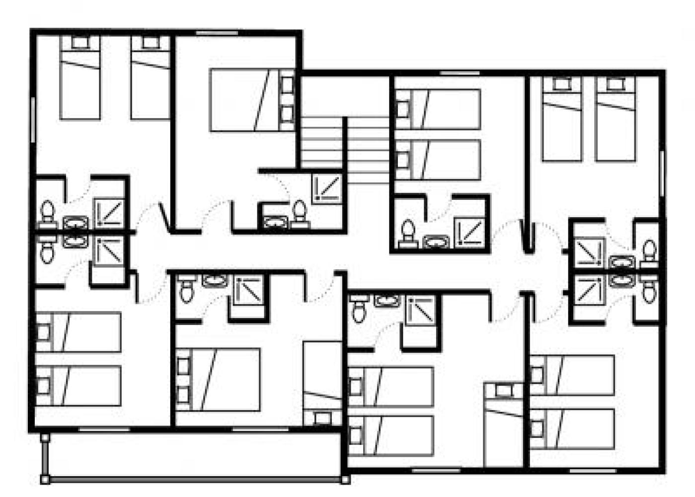 • 13 bathrooms (washbasin + shower + toilet in each)