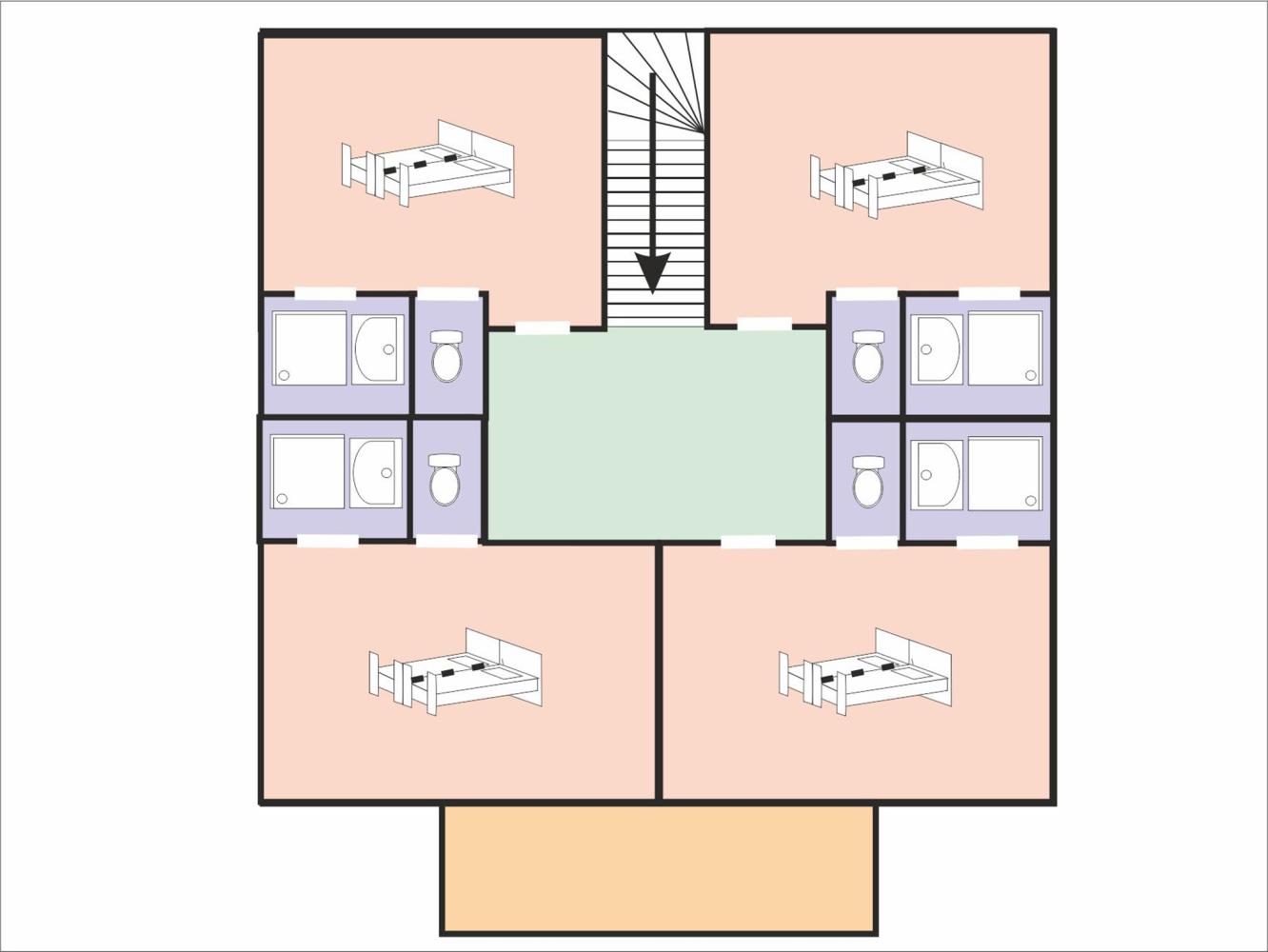 The chalet provides a spacious living room with dining area and a cosy chimney corner. The five double rooms (two single beds each) as well as the family-room for 4 people all have an ‚ en-suite‘ bathroom (with shower) and a separate toilet. From the balcony on the south side, you have a spectacular view over the Belleville mountains and valley.