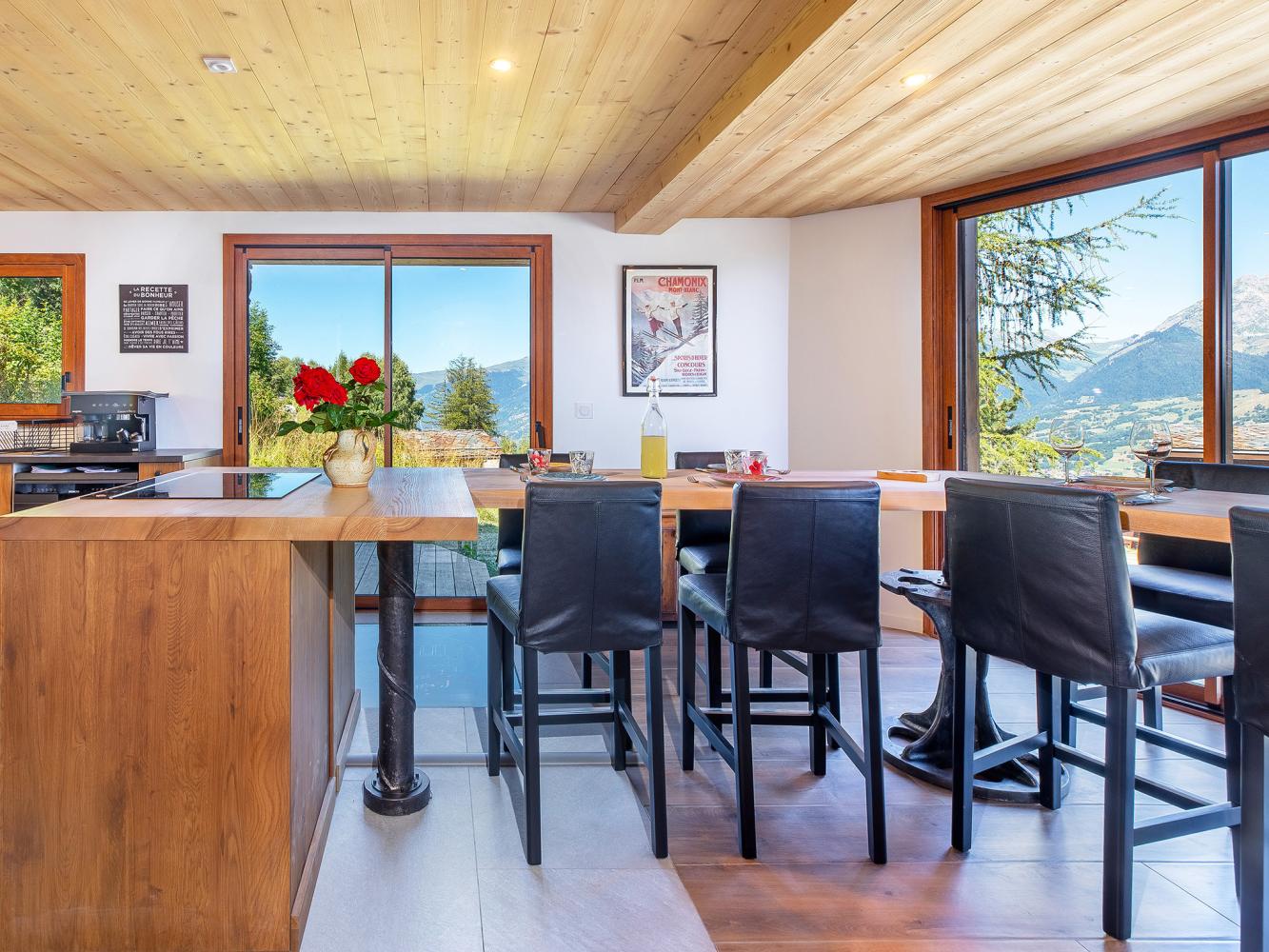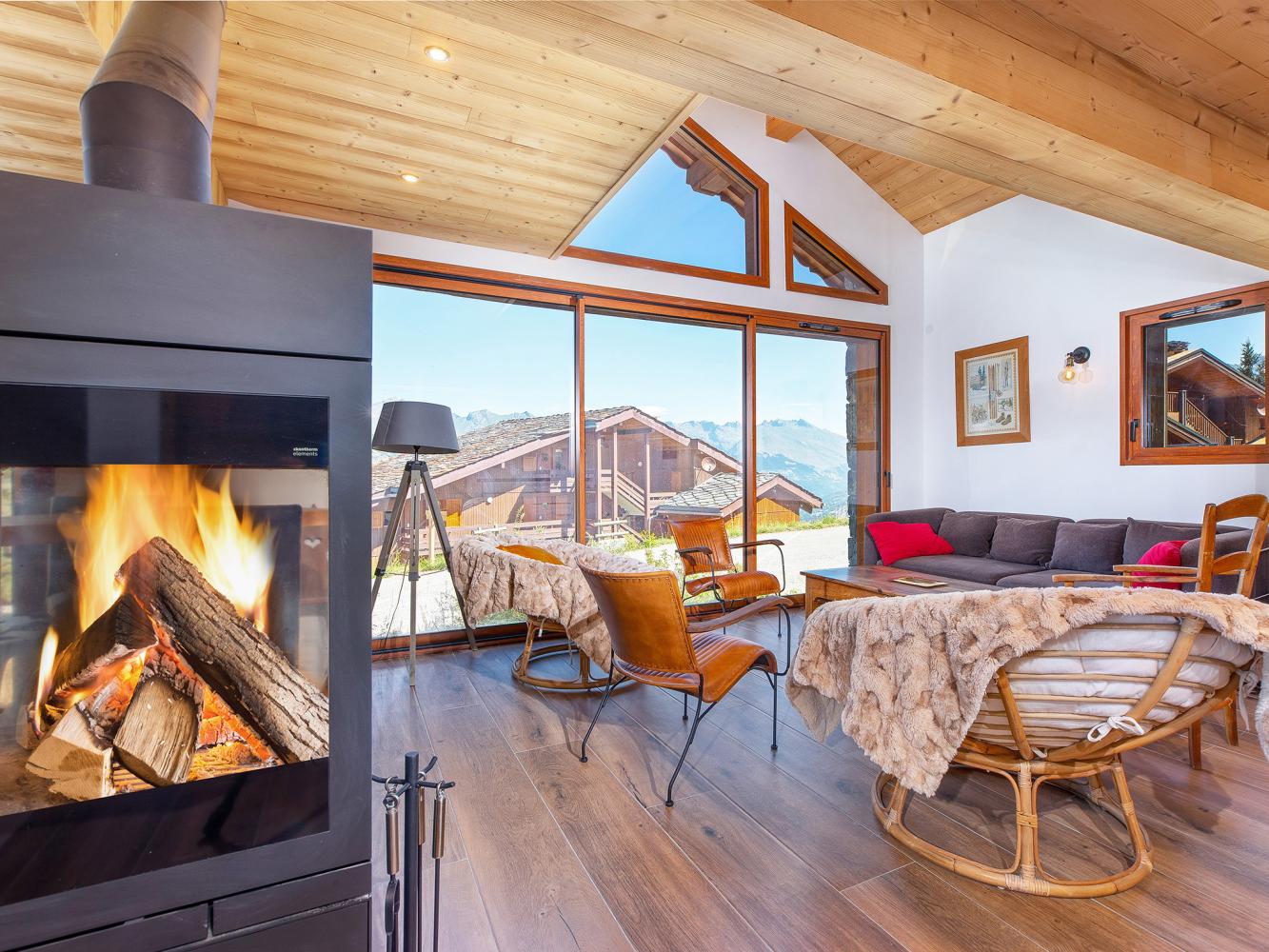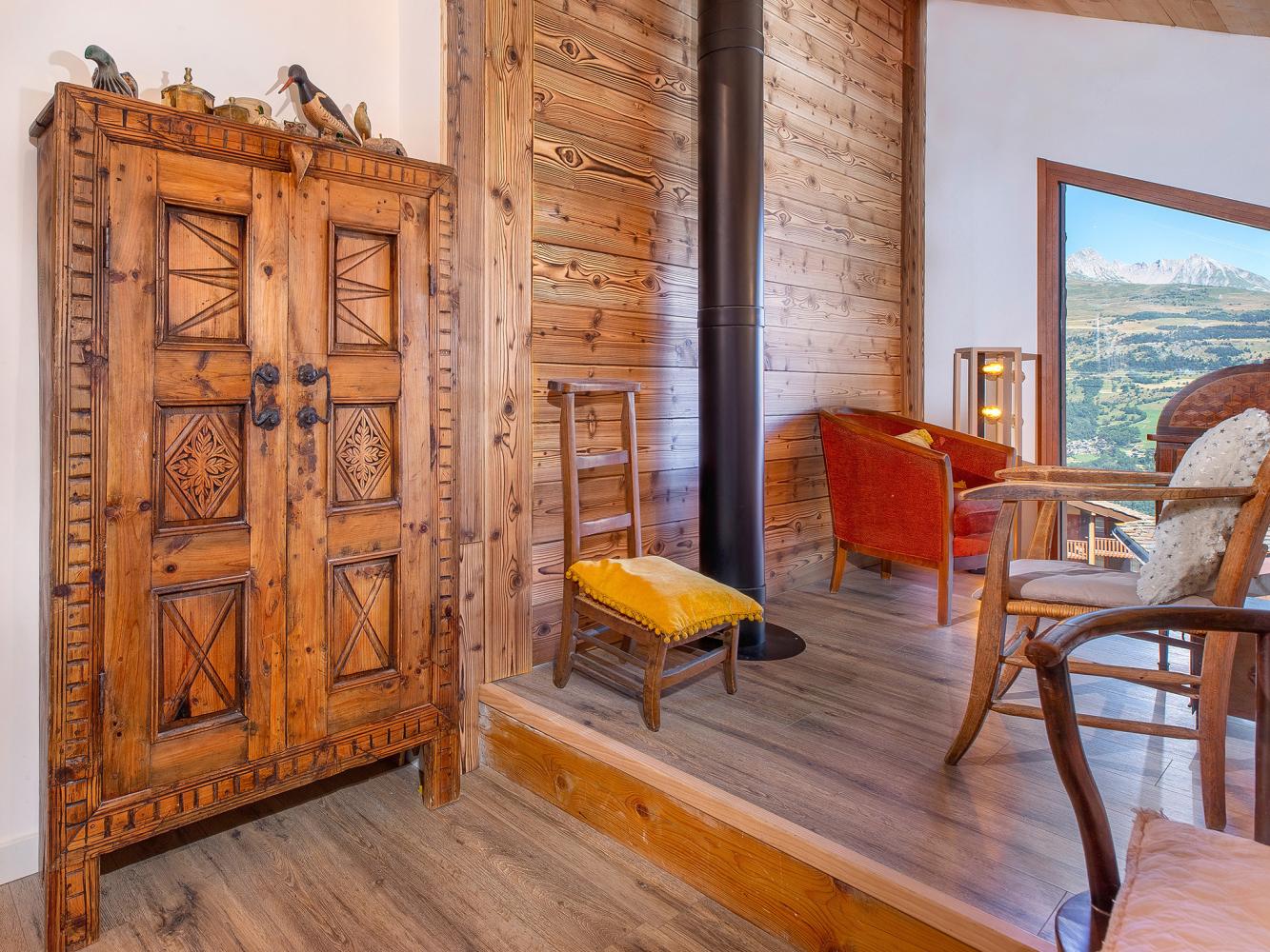 Distance to ski area La Plagne - Paradiski ~150 m. Unique and stylish luxury chalet in ski-in ski-out location with sauna, Swedish stove and free WiFi. Only ~150 m distance to the ski piste, which leads to the Plan Bois express 6-seater chairlift and which is part of the top ski area of La Plagne - Paradiski. The spacious chalet was completely renovated in 2023 and impresses with its modern and high-quality furnishings on three floors. Large panoramic windows in the living area offer breathtaking views of Mont Blanc, the Beaufortain mountains and the Tarentaise valley.