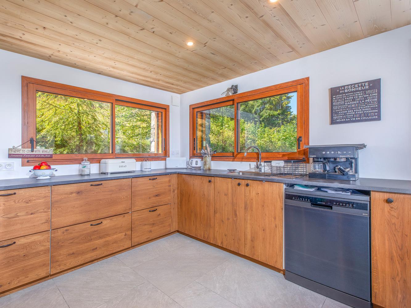 kitchen open to the living room (dishwasher + refrigerator + freezer + induction cooker + oven + barbecue-grill + microwave + coffee machine + toaster + electric kettle + fondue set + blender); stove; free WiFi; towel dryer; washing machine; tumble dryer; underfloor heating in some rooms; terrace; barbecue-grill; garden; ski room; ski boot dryer