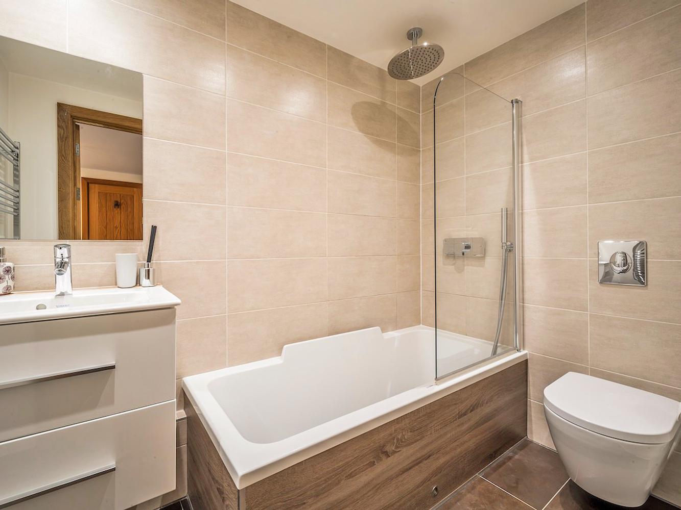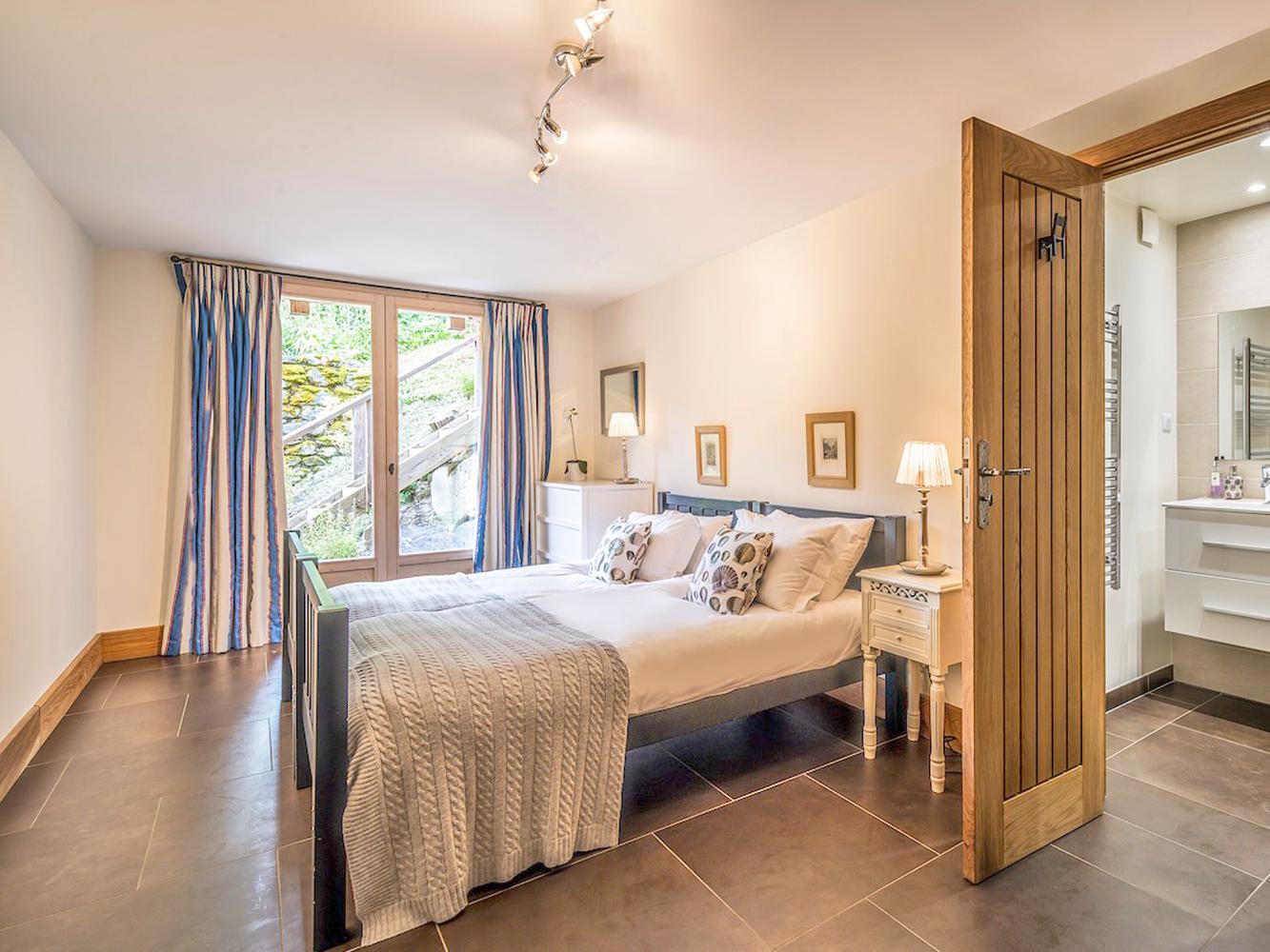 This chalet offers a lot of space and a high-end standard. There are 5 bedrooms (all beds are 2 m long): 3 double rooms, 1 twin room and 1 bedroom with two single beds that can be put together to form a double bed. This room comes with a freestanding bath tub and a washbasin. The twin room has an en-suite bathroom (with bathtub and shower). Also, there are 2 further bathrooms.