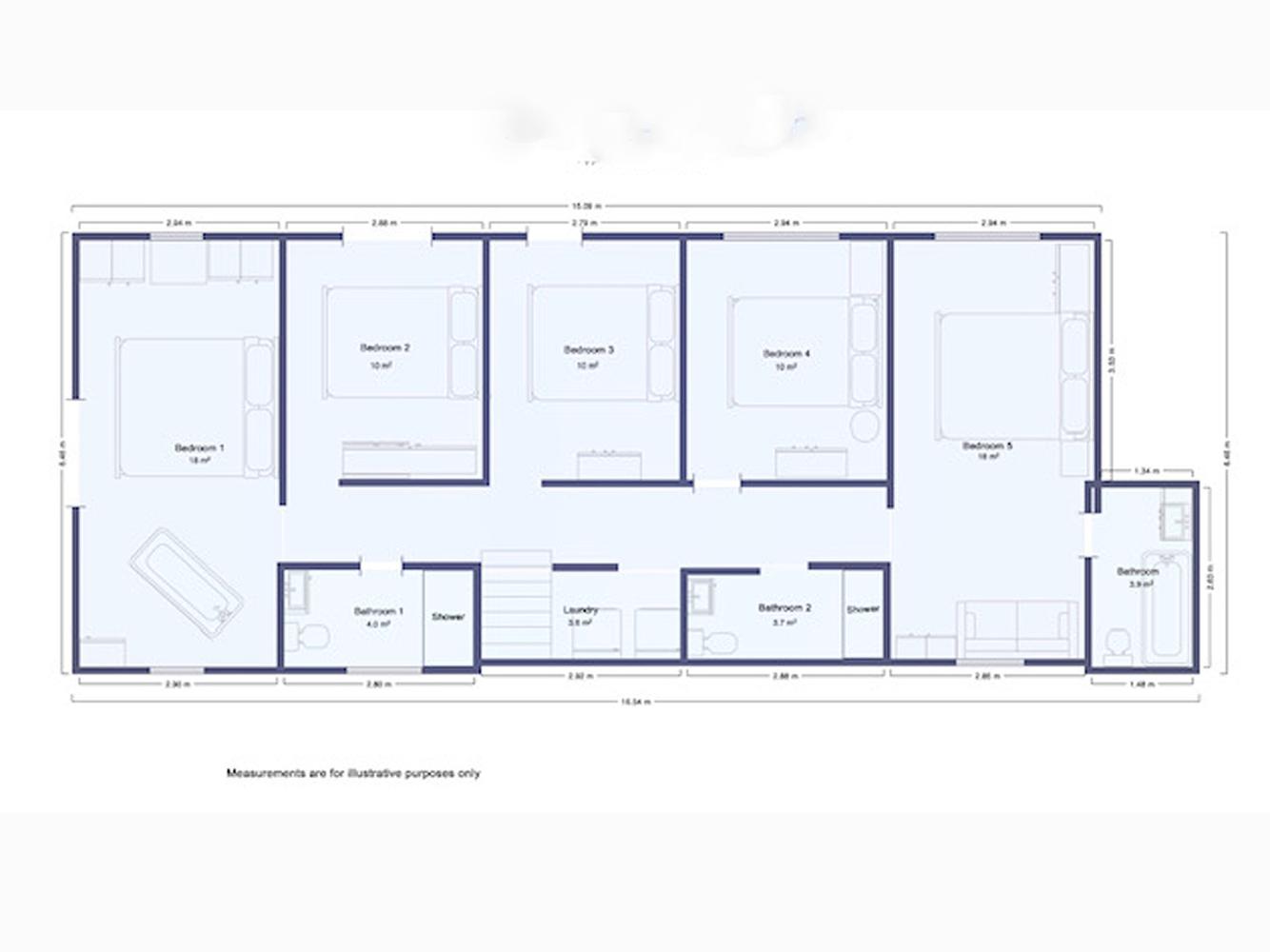 • 2 bathrooms (washbasin + shower + toilet in each)