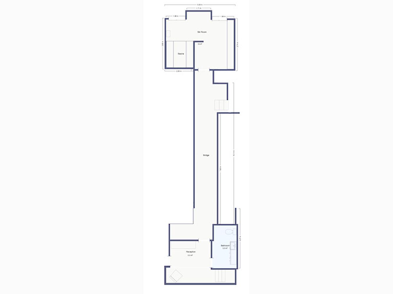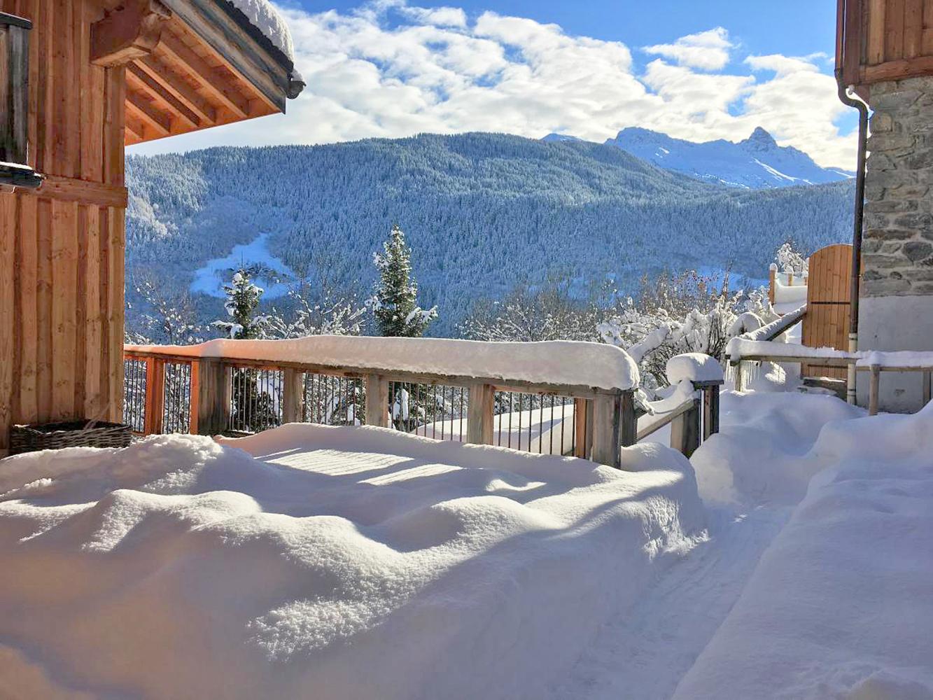 The open-plan living-/and dining room feels very spacious with exposed ceiling beams and double height ceiling at the dining table, and offers magnificent views over to Meribel and Bozel. The modern kitchen is open to the living room and fully equipped. From there access to the large terrace, partly covered. The chalet is equipped with an infrared sauna for up to 6 people.