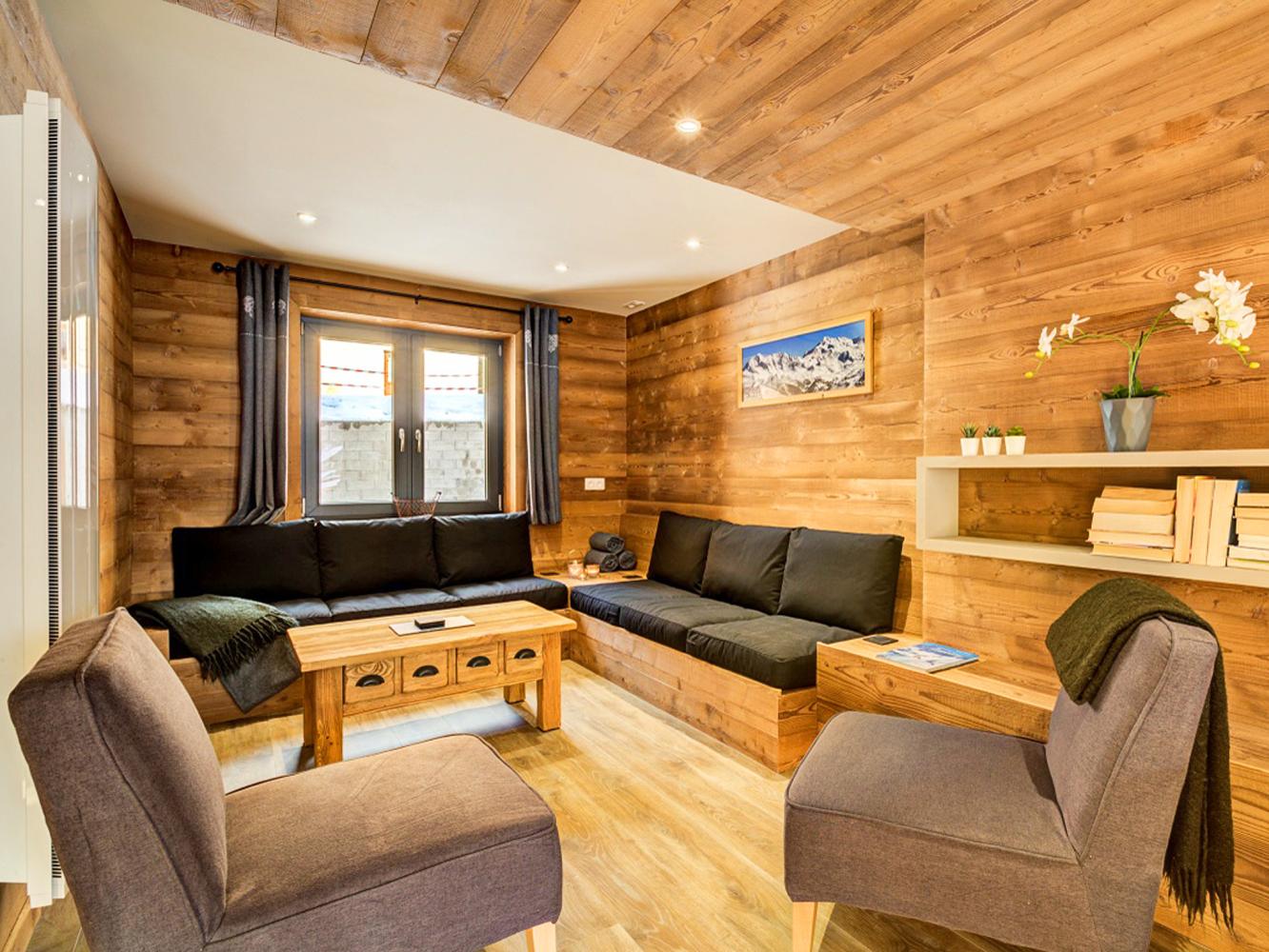 In the heart of Plagne 1800, this cosy and welcoming chalet with free WiFi, is just 250 m from the "1800" ski lift, giving you quick access to the great Paradiski ski area. It is beautifully decorated with a neutral, modern colour palette and comfortable furnishings. Each of the four stylish bedrooms has a flat-screen TV and a modern bathroom with shower, WC and heated towel rail.