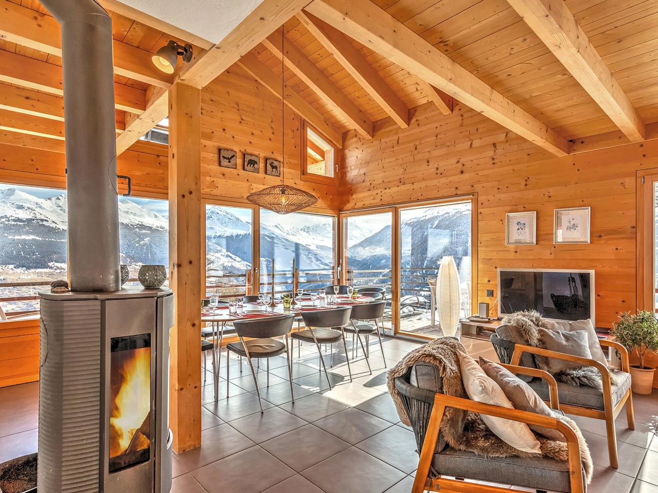 À 0 m du domaine skiable 4 Vallées. Chalet moderne, lumineux et luxueux Ski in-Ski out situé directement sur la piste de ski, avec sauna, poêle à bois et wifi gratuit. Chalet de montagne moderne très spacieux aménagé avec des meubles scandinaves.