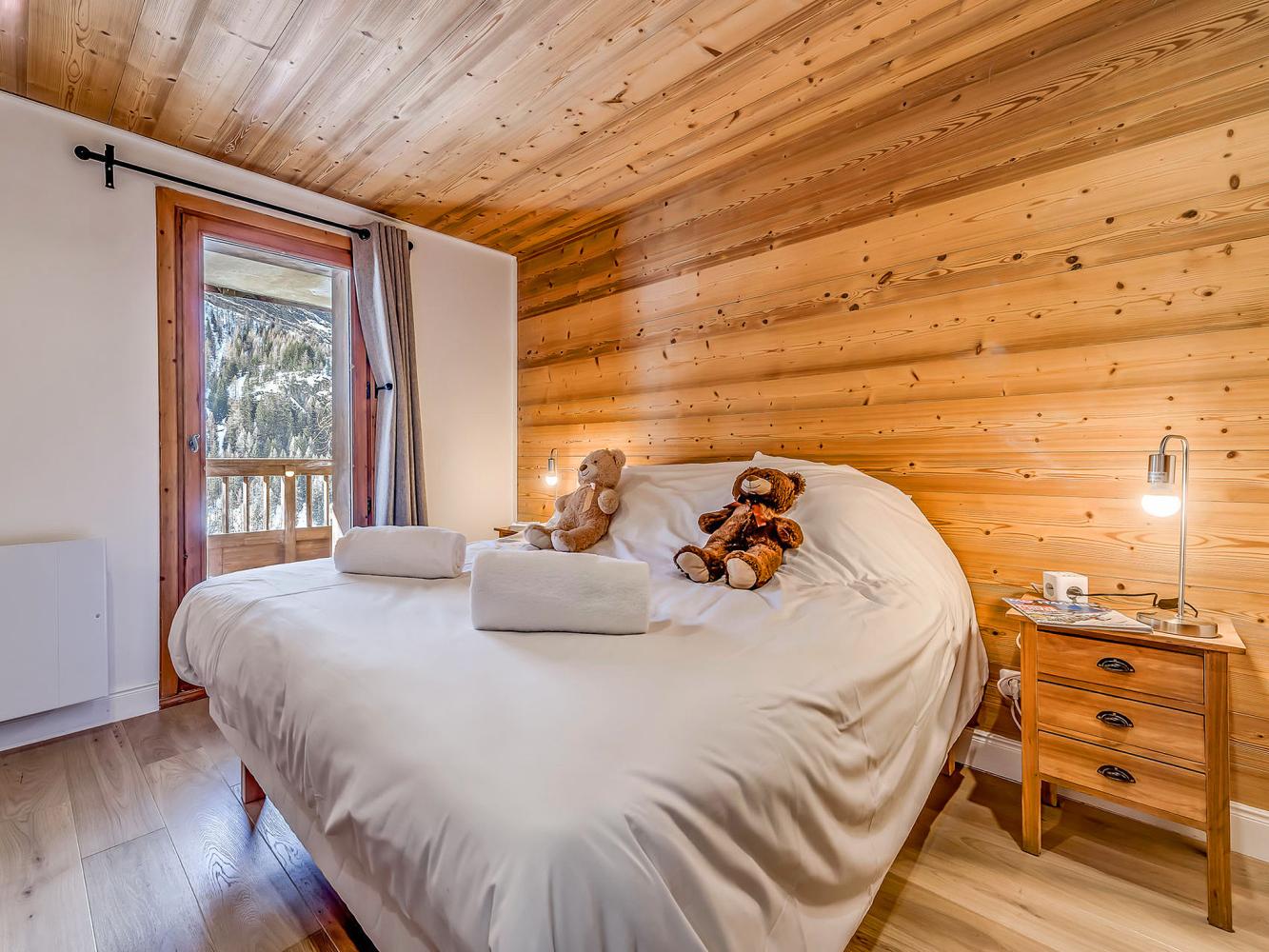 Rez-de-jardin : Une chambre double avec salle de bain ensuite. Entrée avec dressing et grand local à ski avec des sèche-chaussures électriques. Il s'agit d'un chalet mitoyen ; à gauche sur la première photo.