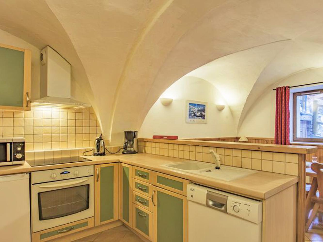 Le superbe aménagement de l'appartement de 4 personnes situé au rez-de-chaussée du chalet est rehaussé par la présence d'un vieux plafond avec des voûtes à croisée d'ogives. 2 chambres à coucher, une pièce à vivre avec une cuisine ouverte et un canapé-lit, une salle de bains et des toilettes séparées se répartissent sur 60 m² de surface habitable. De plus, les locataires de cet appartement auront à leur disposition une machine à laver.