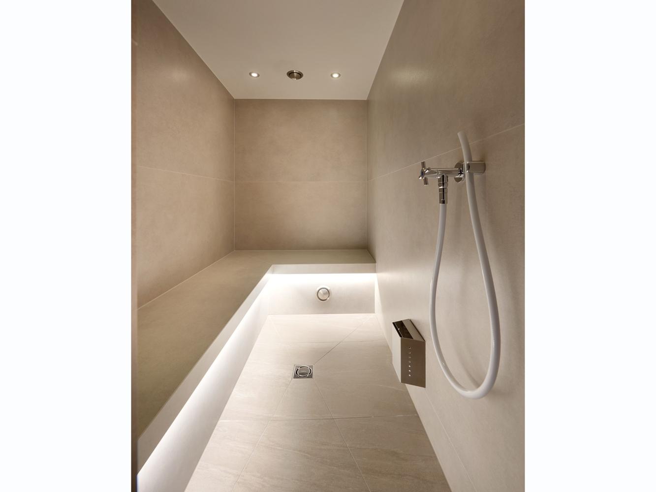 Au sous-sol, il y a un grand espace détente avec des chaises longues, cheminée, un lit à eau, une baignoire, un sauna avec fenêtre et un hammam. Peignoirs de bain inclus. De plus, un vestiaire des skis, la buanderie et un WC séparé.