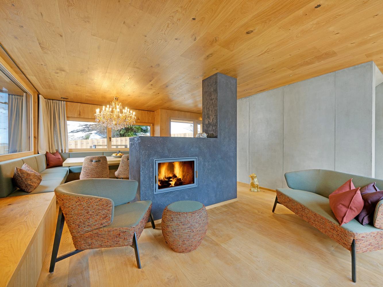 Au rez-de-chaussée se trouve une chambre double (180 x 200 cm, matelas séparés) avec douche et WC privés. De la cuisine bien équipée, il y a un accès direct à la terrasse panoramique. La salle de séjour, ouverte sur la cuisine, offre beaucoup d'espace à la grande table et un coin salon avec TV et cheminée.