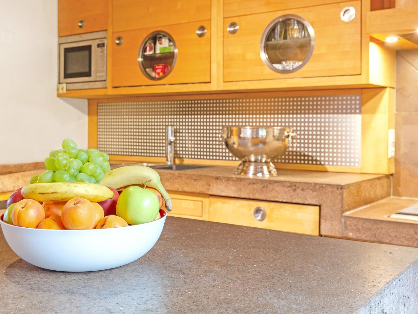 Au 1er étage se trouve l'entrée principale du chalet ainsi que le salon convivial et lumineux avec une cheminée et le coin canapés. L'espace salle à manger spacieuse dispose d'une grande table pour 12 personnes. De là et du salon, on a accès à l'une des terrasses, où l'on peut s'asseoir confortablement à la table extérieure par beau temps. La cuisine ouverte moderne avec îlot central est de grande qualité et entièrement équipée. La véranda séparée dispose de grandes fenêtres panoramiques qui font entrer la lumière et la nature des montagnes impressionnantes. Accès direct à la terrasse où se trouve le grand jacuzzi extérieur, en option payante, CHF 380 par semaine.